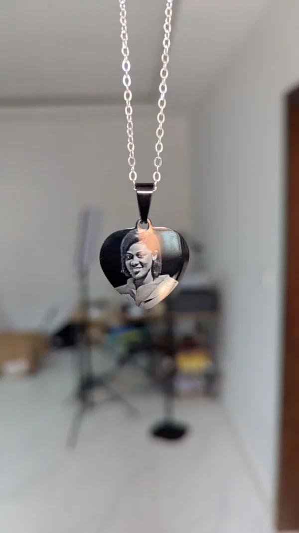 Un bijou unique avec votre photo gravée et une gravure au dos (texte ou QR code).